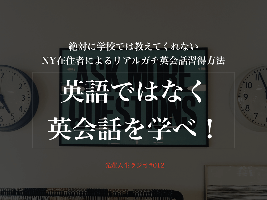 先輩人生ラジオ#012 「英語ではなく英会話を学べ!」 【内容】 ドラゴンはNYで起業してるけど、どうやって英語を勉強したの? リスニングは慣れだ! Kojiは英語をモノマネで習得した 英語練習するためにバ…